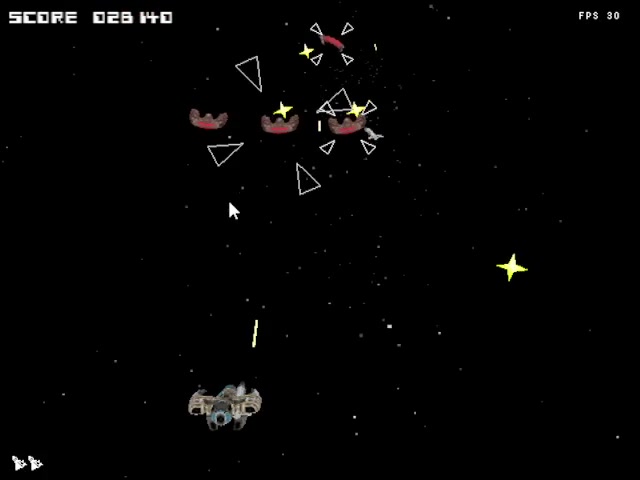 シューティングShockwave3D 開発元 電脳猿工房 初公開日 2003/7/12 提 供 LudiCraft リリース日 2025/5/13 カーソルに向かって機体が移動し、クリックでショットと誘導ミサイルを発射します。